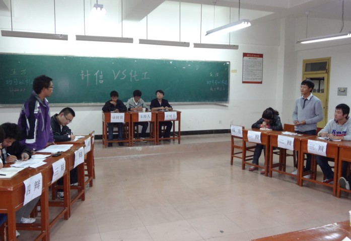为丰富大学生课余生活,活跃校园文化,培养当代大学生的团结、竞争、进取的精神,体现大学生的精神面貌,在十月份由明德学院计信系与化工系学生会主办的辩论赛圆满落下帷幕。