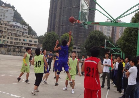 各班代表队比赛中,其中以环境09VS制药10决赛最为精彩,不管是从赛场上队员之间的比拼,还是场外啦啦队之间的竞争都是非常激烈与精彩的。首先两个班之间的对抗虽然始终保持“友谊第一,比赛第二”的原则,但仍是拼尽全力,当仁不让。此外,此次篮球比赛还请了大四、大三的学长们与大二的部分同学担任裁判,这更加体现了这次比赛的公正性。