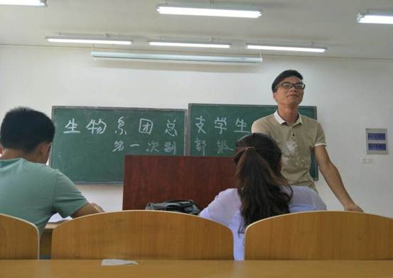 (素拓部 任希/摄影 部员)生物系团总支学生会在8月30号晚上进行紧张的筛选后,确定各部门的副部级以上名单,并于31号在D栋301召开第一次副部级大会。