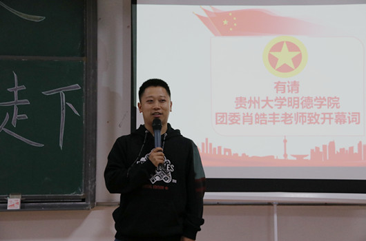 肖皓丰老师致开幕词,他讲到手机在日常生活是不可缺少的一部分,已经成为了习惯。大部分同学也是如此,希望同学们从网络中走出来,去看看祖国的大好河山,收获属于自己的那一份快乐。