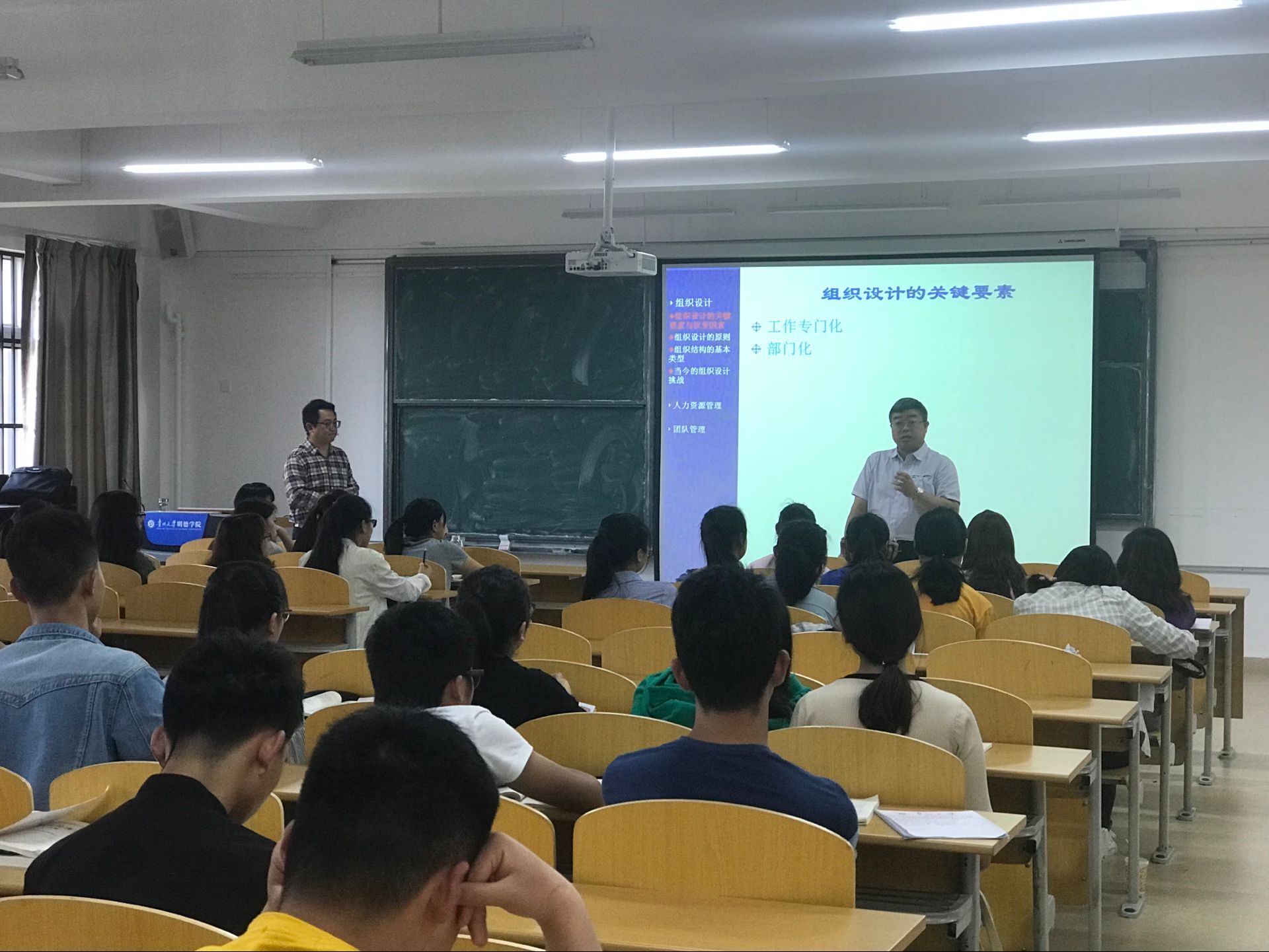 2017~2018学年度第二学期期中教学检查期间,吴天祥院长前往管理系随堂听课,教学科研部况翔老师随同听课。听课期间,吴天祥院长认真记录任课教师的授课情况,仔细检查学生到课情况以及相应的教学保障等,并在课后与任课教师进行了简短交流。期间吴天祥院长对于授课教师的教学工作给与了肯定和鼓励。