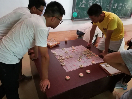 之后主持人宣布由班级组织的几项比赛开始,其中象棋比赛尤为激烈,各个都是棋中老手,杀得难解难分不亦乐乎。