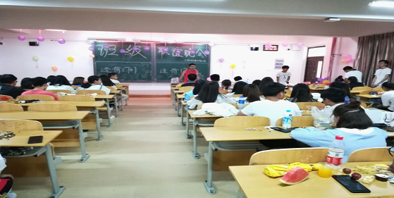 户外的友谊赛到此告一段落,同学们一起有说有笑的前往B409教室举行联谊活动,教室布置是由两个班的几位班委带领一部分同学一起完成的,非常漂亮。