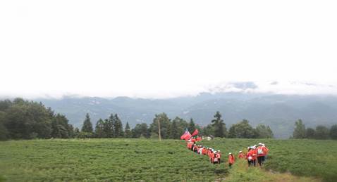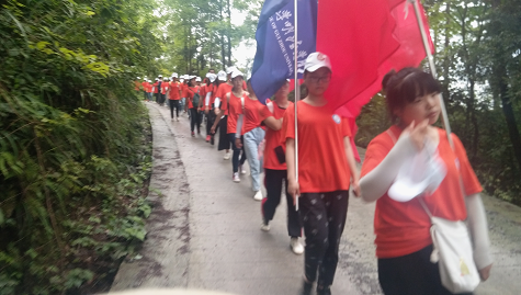 下午3点从楠木小学出发,队员们排列整齐、唱着《团结就是力量》、《歌唱祖国》等歌曲前进,展现了当代大学生朝气蓬勃、活力四射的精神风貌。