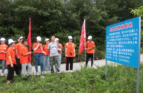 2018年7月6日,管理工程系暑期三下乡产业基地扶贫调研走访,同行的有楠木村党支部书记赵寿国、副主任赵友强、楠木村辣椒基地负责人兼技术指导员(徐显平、冯海)及管理工程系团总支书记赵义远。