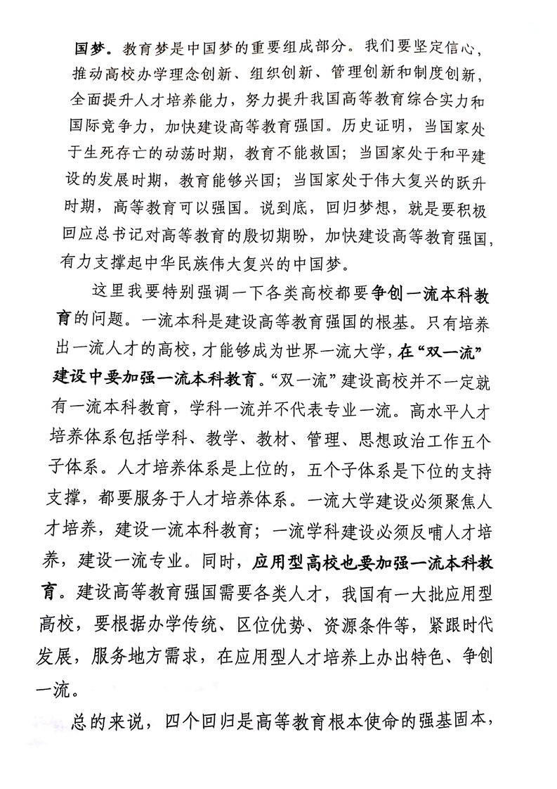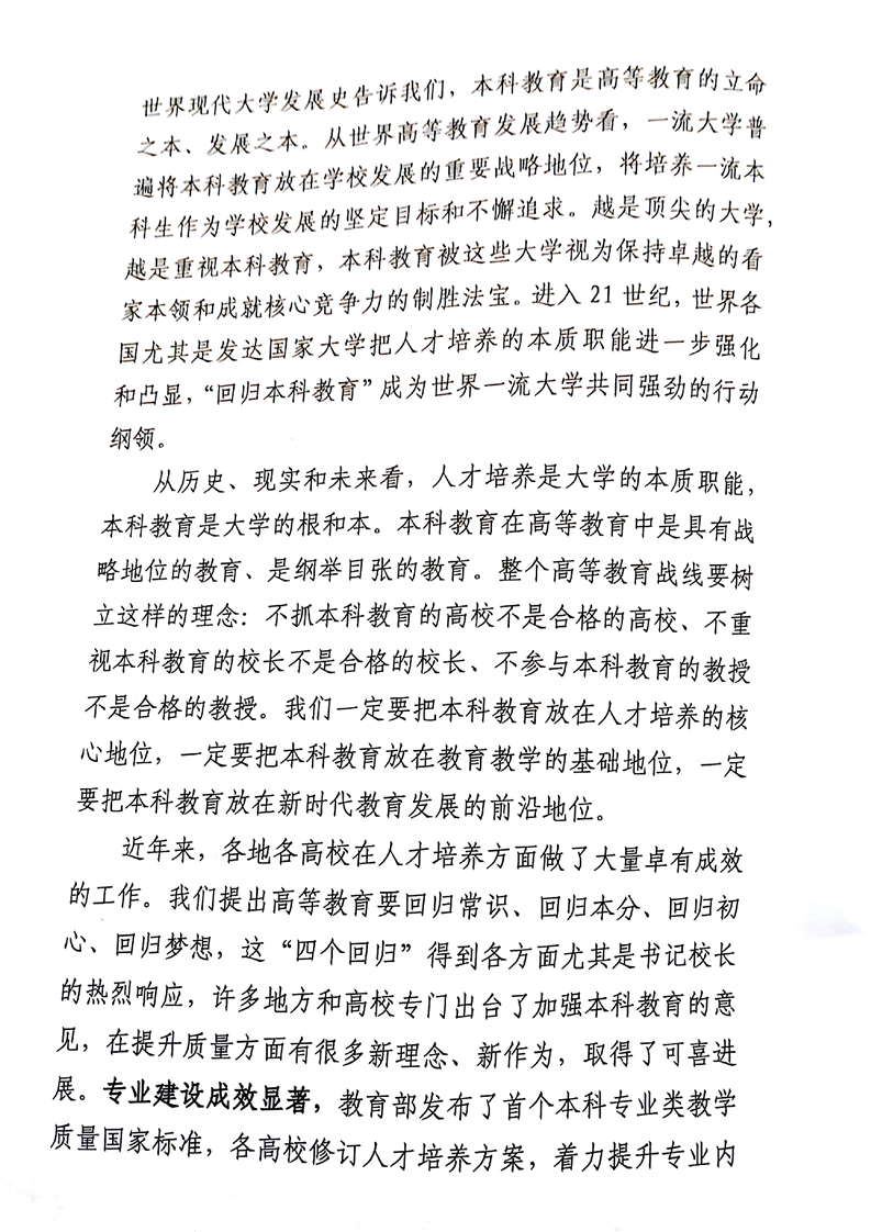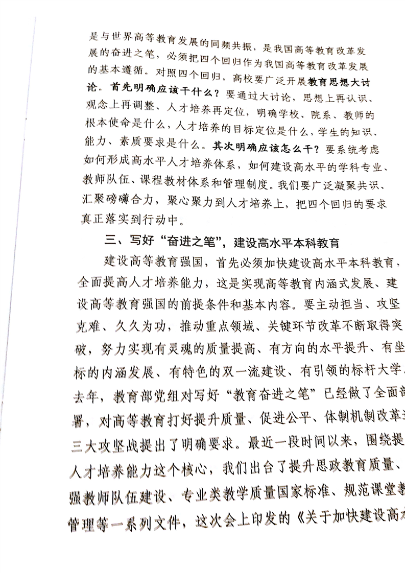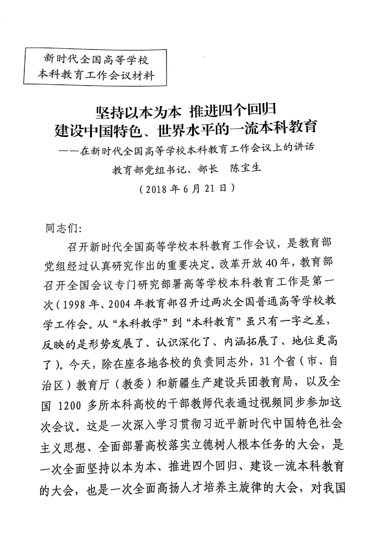 陈宝生在新时代全国高等学校本科教育工作会议上的讲话
