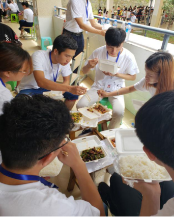 虽然已是9月,可太阳似乎没有停下炙烤的意思,经过一上午的工作,志愿者们早已是汗流浃背、饥肠辘辘,可这并没有消减志愿者们的热情,简单吃过午饭,又继续投入到迎新的工作中。