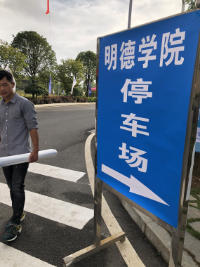 在报到现场,我部制作了停车指示牌,并由校卫队、志愿者和专门负责的保安人员共同指挥管理,在所有人的积极努力之下,迎新活动秩序井然。