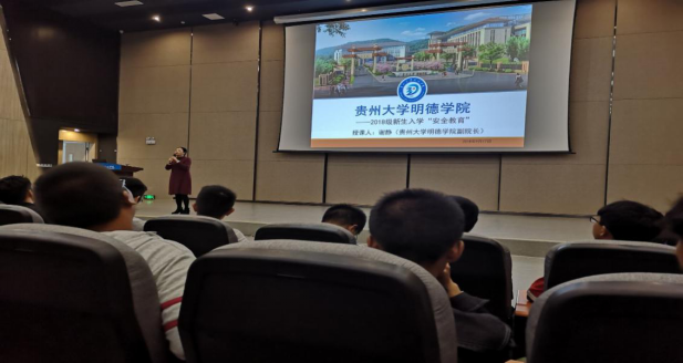 会议开始,谢静副院长代表学校欢迎信息系18级新生加入贵州大学明德学院这个大家庭。并向到场的全体师生简单阐述了自己的职业生涯与教学经历,同时询问同学们家庭、成绩等问题了解学生们的情况,以此拉近与同学们的距离。
