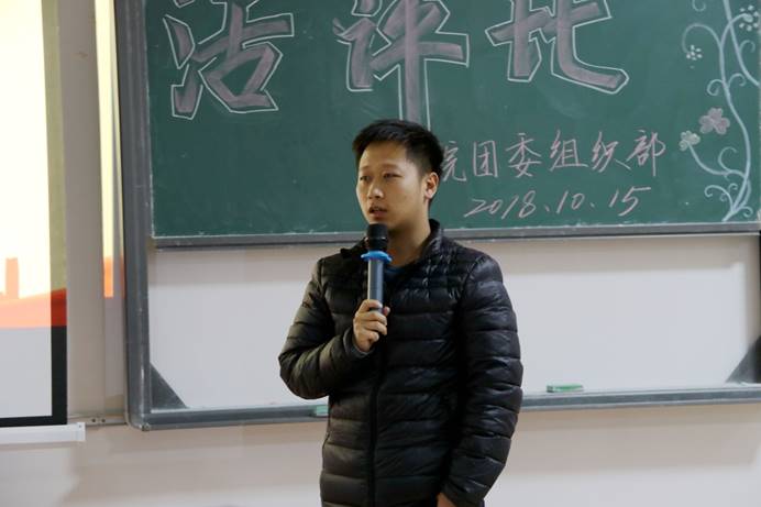 新闻网讯(团宣/庭苡轩 摄影/何婷 周林炜)10月15日,我院在花溪大学城校区B栋508教室举行“学习社会主义核心价值观,争做时代新青年”为主题的团组织生活评比活动,团委肖皓丰老师、土木系江坤老师、各系学生会主席代表参加本次活动。此次活动由院团委主办,院团委组织部承办。