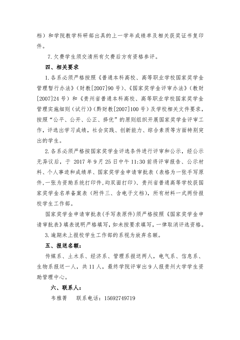 关于做好我院2016-2017学年度国家 奖学金(本科生)评选工作的通知