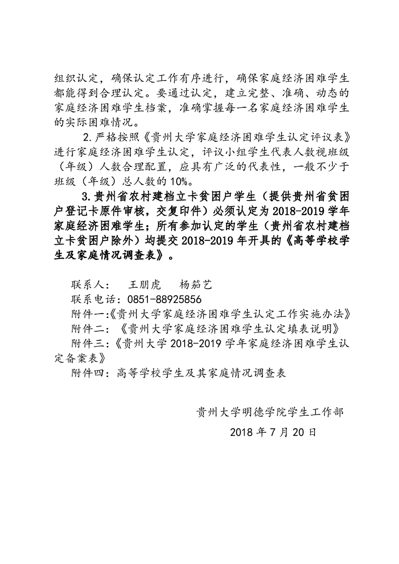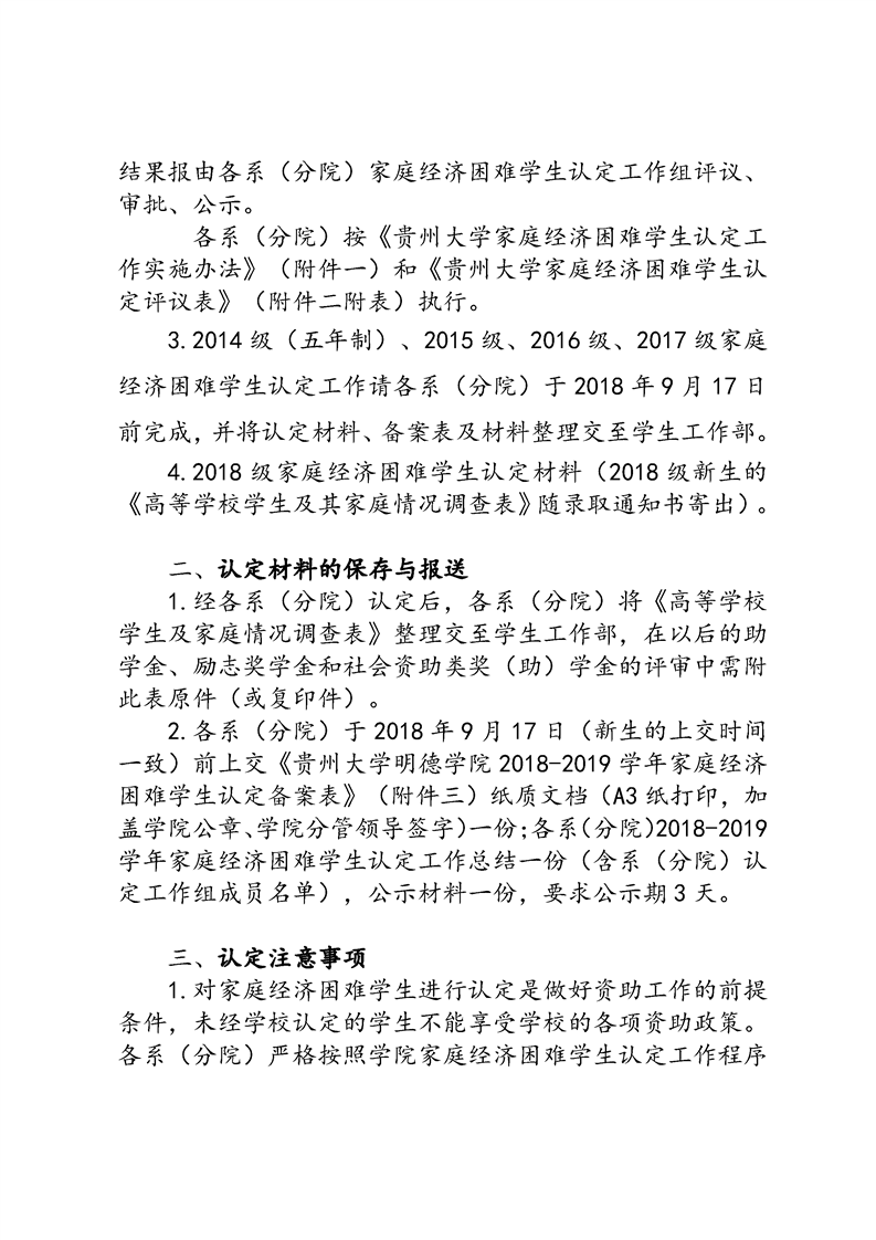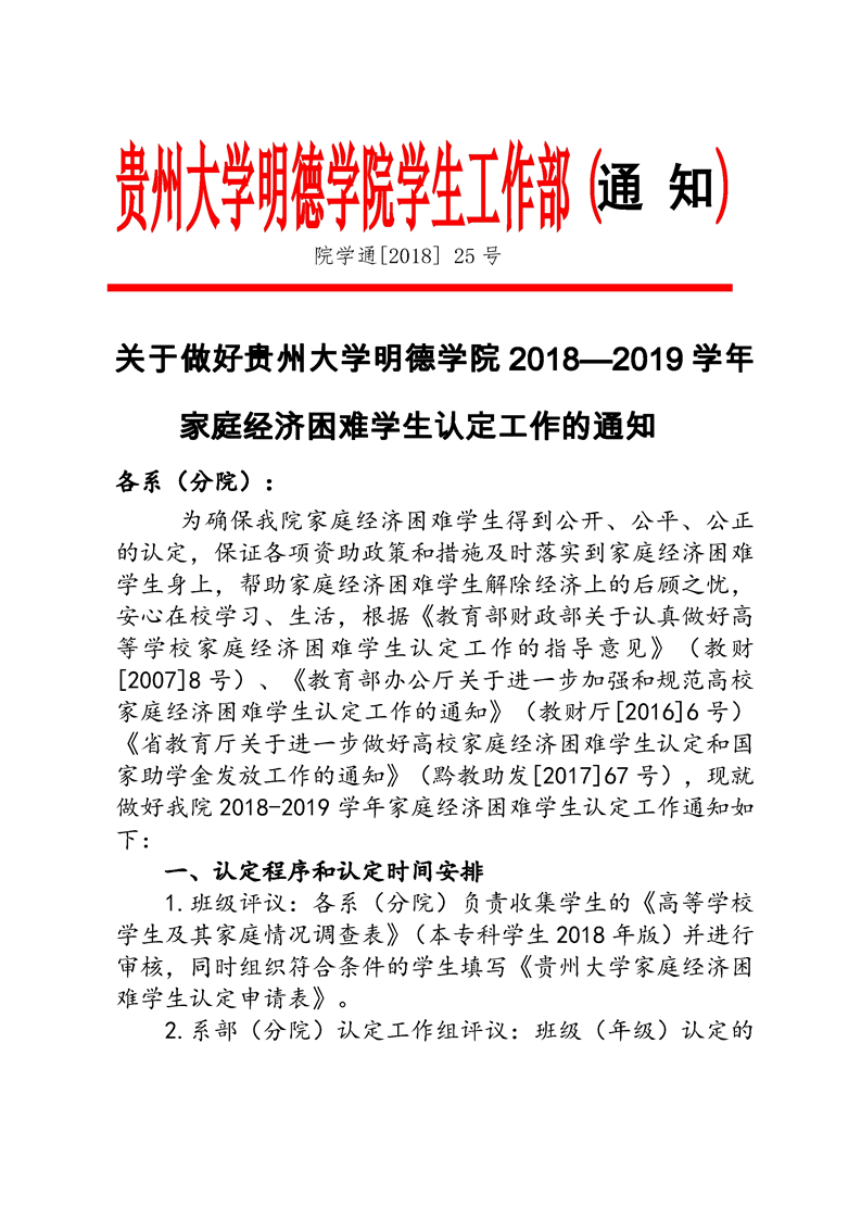 关于做好贵州大学明德学院2018-2019学年家庭经济困难学生认定工作的通知