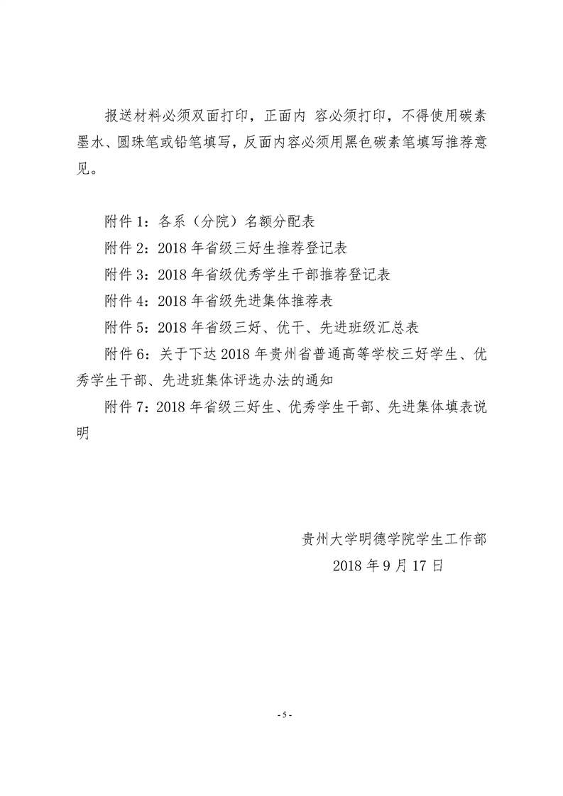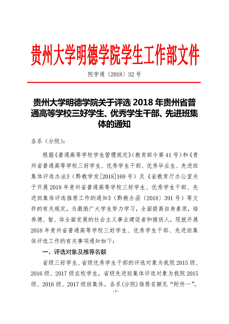 贵州大学明德学院关于评选2018年贵州省普通高等学校三好学生、优秀学生干部、先进班集体的通知