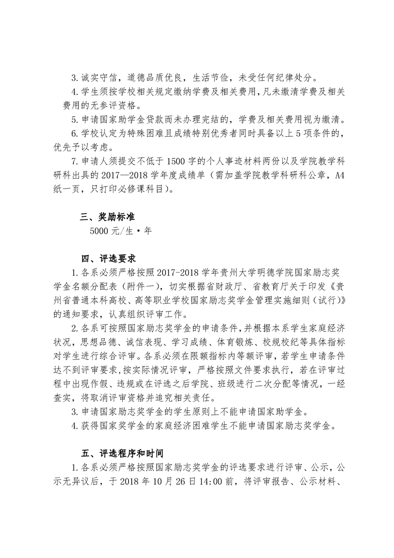 贵州大学明德学院关于评选2017-2018 学度国家励志奖学金的通知
