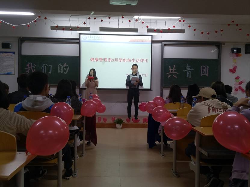 (供稿 陶思璇/供图 部员)为弘扬民族精神,传承中华民族文化优秀传统,健康管理系团总支学生会于10月12日晚上19:00在B209教室开展了团组织生活评比活动。出席此次活动的有健康管理系团总支书记张丽老师、健康管理系辅导员杨鹏老师及教师代表;各系团总支学生会主席团代表及健康管理系各班代表。