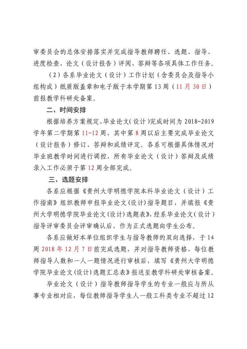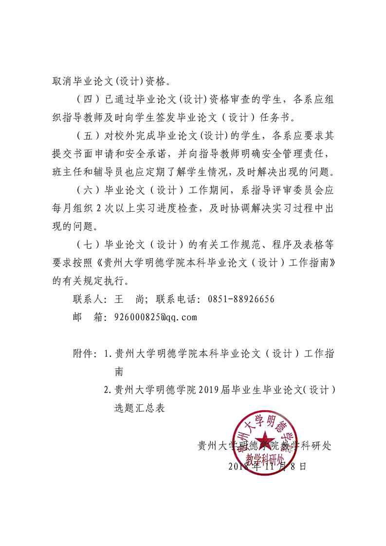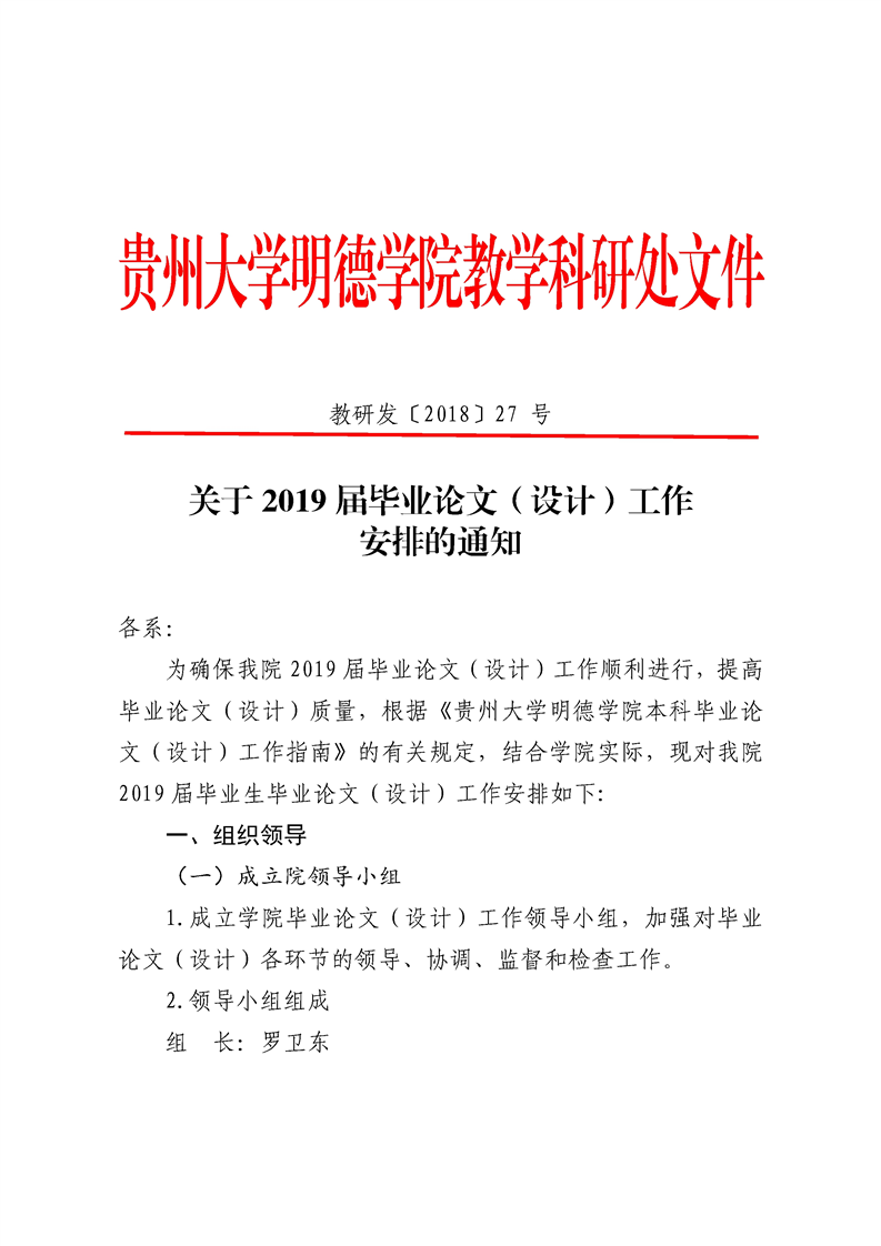 贵州大学明德学院关于2019届毕业论文(设计)工作安排的通知