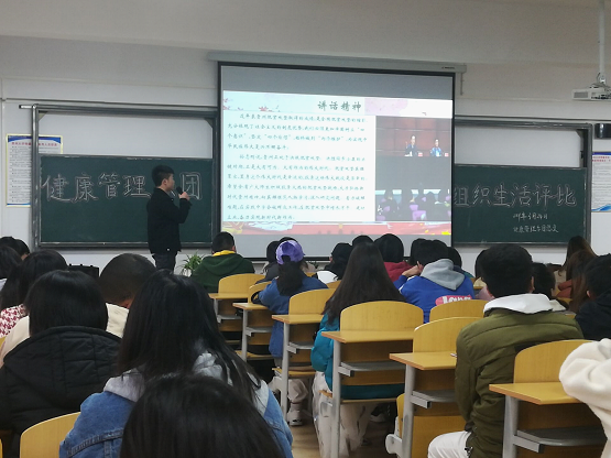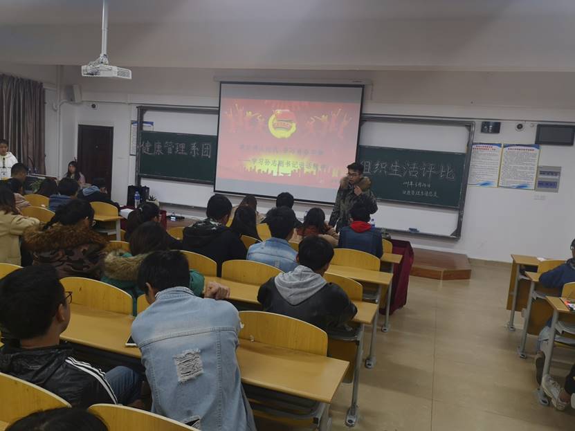 (供稿 龚沙沙/供图 宣传部部员)2019年3月24日下午18:00健康管理系团总支学生会在教室f306举行了3月团组织生活评比,本月团组织生活评比的主题是“建功伟大时代,书写青春华章——学习孙志刚书记讲话精神”。参加本次团组织生活评比的有健康管理系团总支书记张丽老师、健康管理系团组织学生主席团成员及各评比班级同学。
