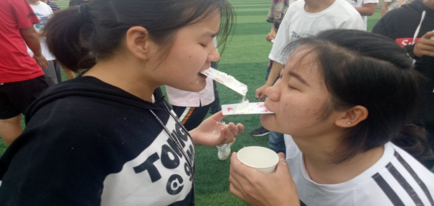 素拓活动的一系列游戏陆续开展,“连环呼啦圈——团队的协作能力”、“纸牌传物——团队的配合能力”“脸上讨口——团队的个人能力”等游戏生动而有趣的进行着;