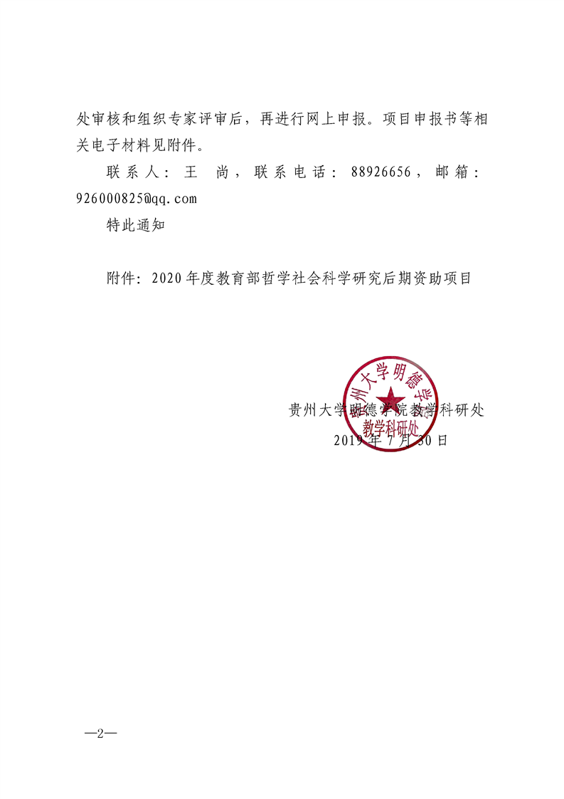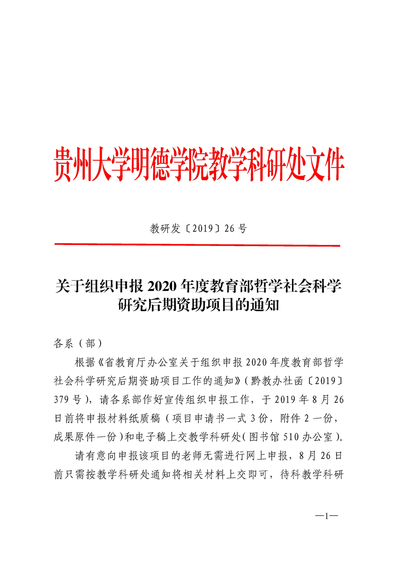 关于组织申报2020年度教育部哲学社会科学研究后期资助项目的通知