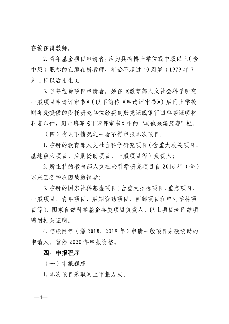 关于组织申报2020年度教育部人文社会科学研究一般项目的通知