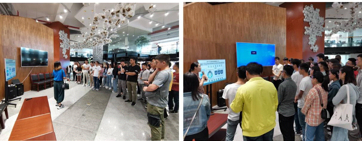 学生去到公司门口,就有安排好的工作人员带领每个班的同学分别参观见习,工作人员最先向同学们宣传该公司的企业文化、主要项目、服务平台以及办公区、餐厅、休息室、娱乐场所等。公司占地面积很大,员工工作氛围浓厚,态度和善近人。大概了解该公司的经营范围和文化后,工作人员又带领所有同学达到餐厅休息室,为同学们准备了丰厚的点心和热饮等美食,公司气氛十分温馨,人性化的设计让员工包括我们在内都感受到了公司的热情与期待。来到该公司参观的不仅仅是我们系的同学,还有如贵州大学、贵州财经大学等学生也陆续抵达参观了解。午餐过后,主持人还带着大家玩起游戏“猜歌词”来,大家都十分积极的参加,猜对者则有现场红包赠送,红包数值还是非常值得人期待的。大家还参加了朋友圈积攒活动,满88个赞以上的同学则有128元大红包赠送。大家都兴高采烈地配合,了解该公司的官网与招聘,对于公司的环境和设计给了很高的评价,希望之后能参加该公司的招聘宣讲会。