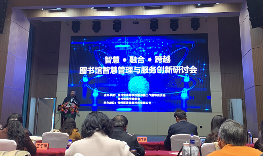 2019年10月24日下午,图书馆负责人何正直和馆员周博宇参加了贵州省图书馆学会主办,贵州超星信息技术有限公司承办的图书馆智慧管理与服务创新研讨会。贵州省图书馆学会副秘书长戴宇丹出席本次会议。会议由贵州民族大学图书馆馆长卢云辉主持。