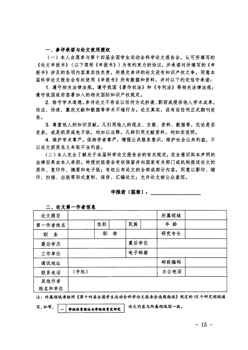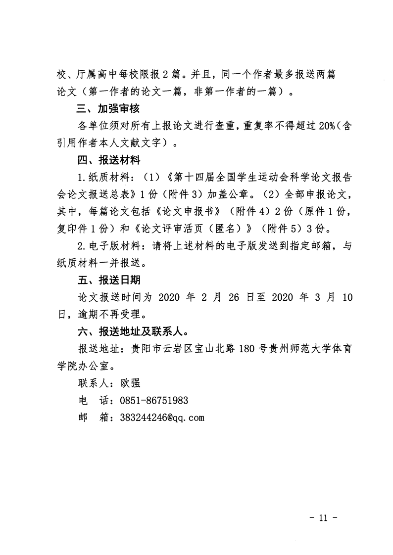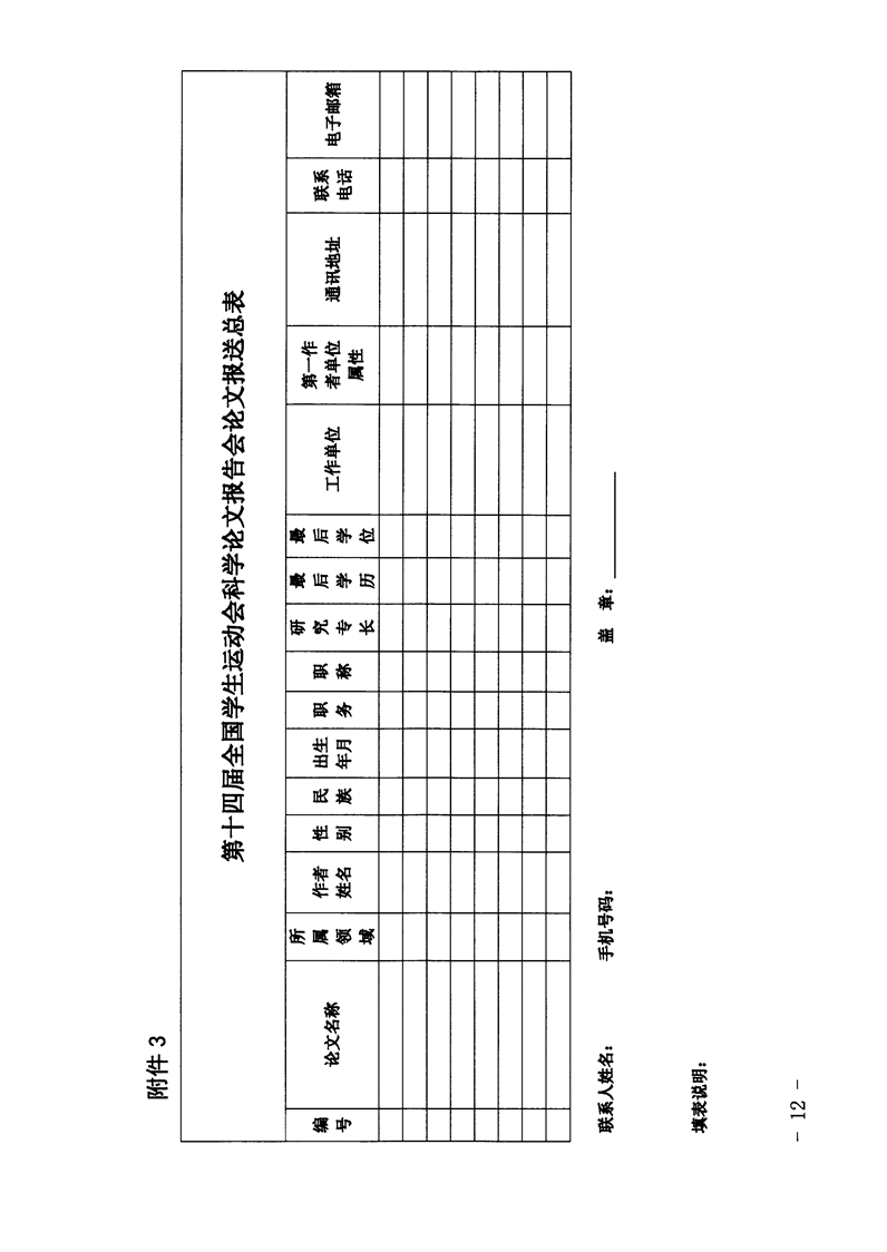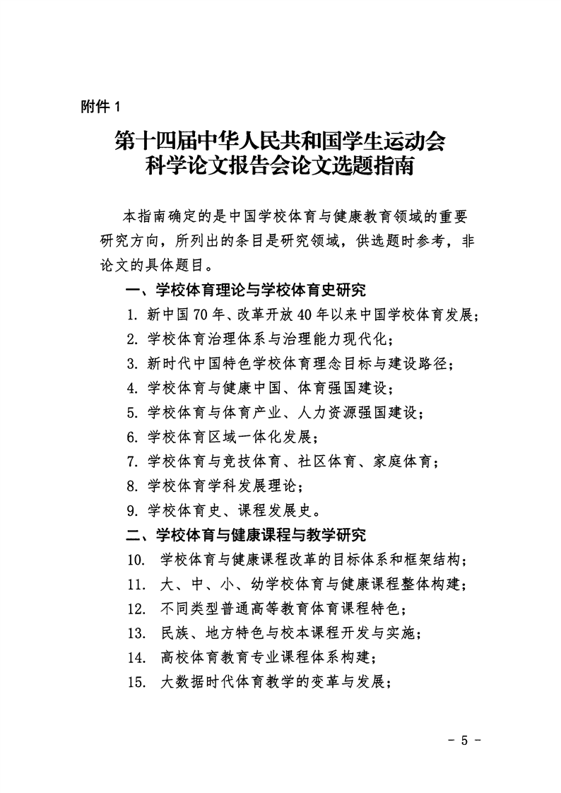 省教育厅办公室关于征集全国第十四届学生运动会科学论文报告会论文的通知