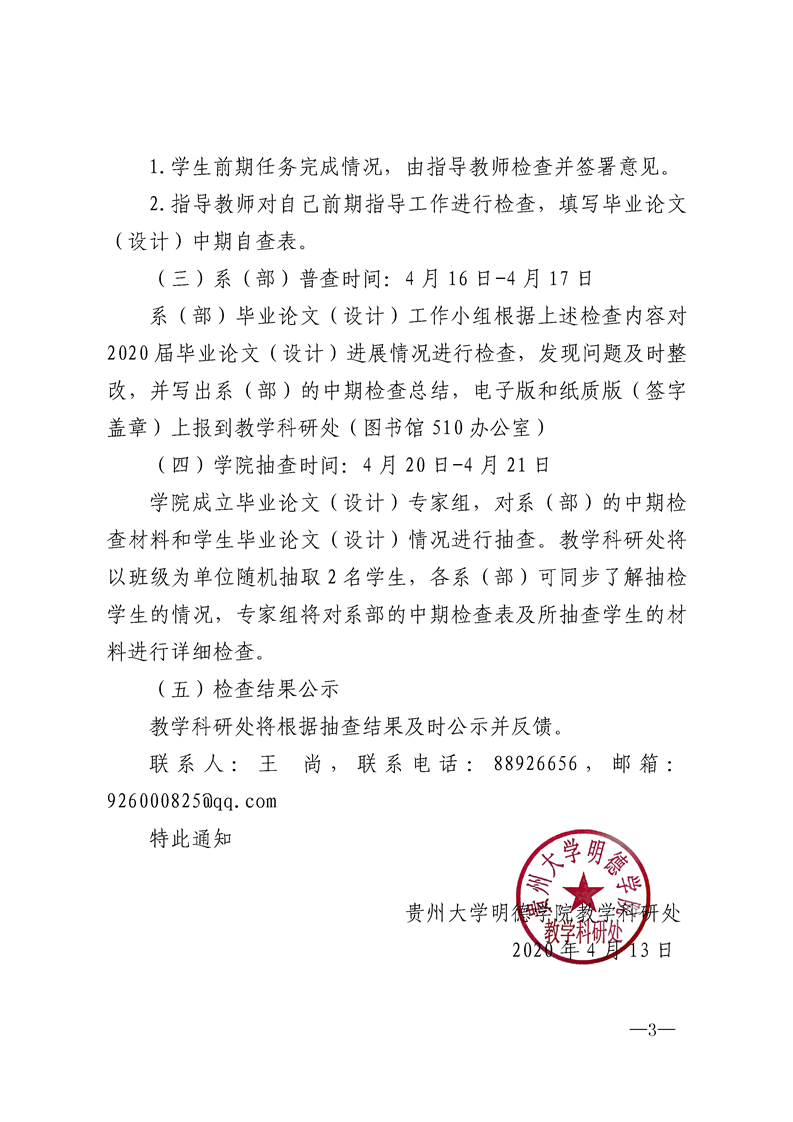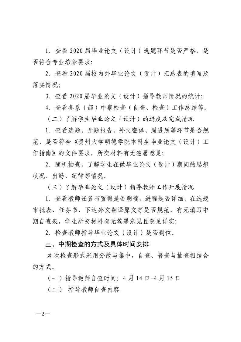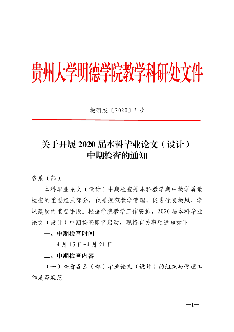 关于开展2020届本科毕业论文(设计)中期检查的通知