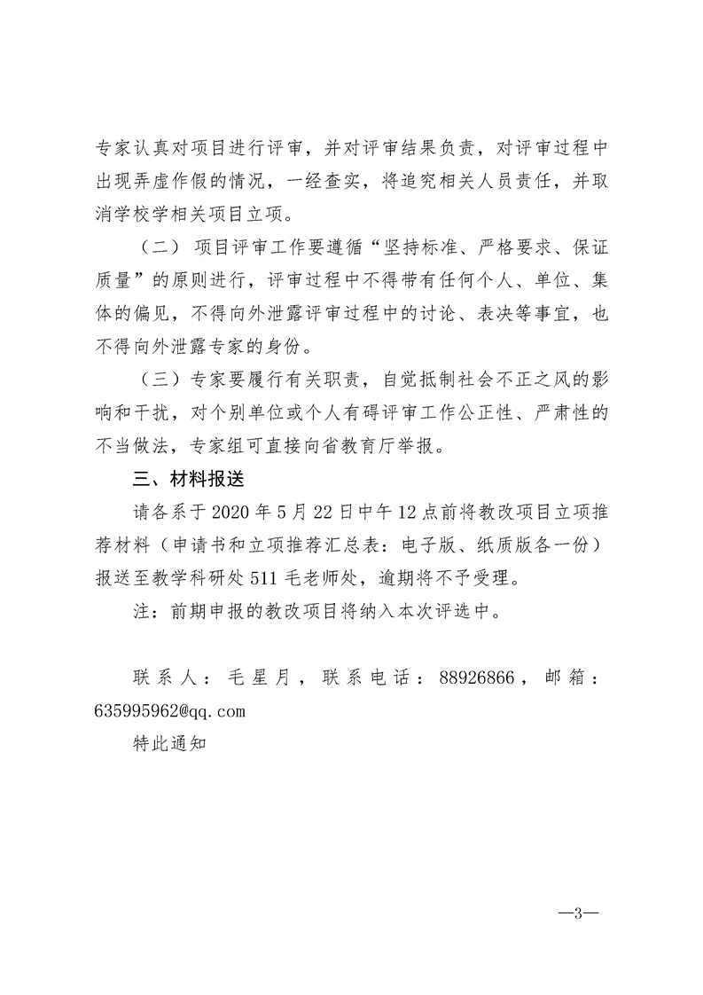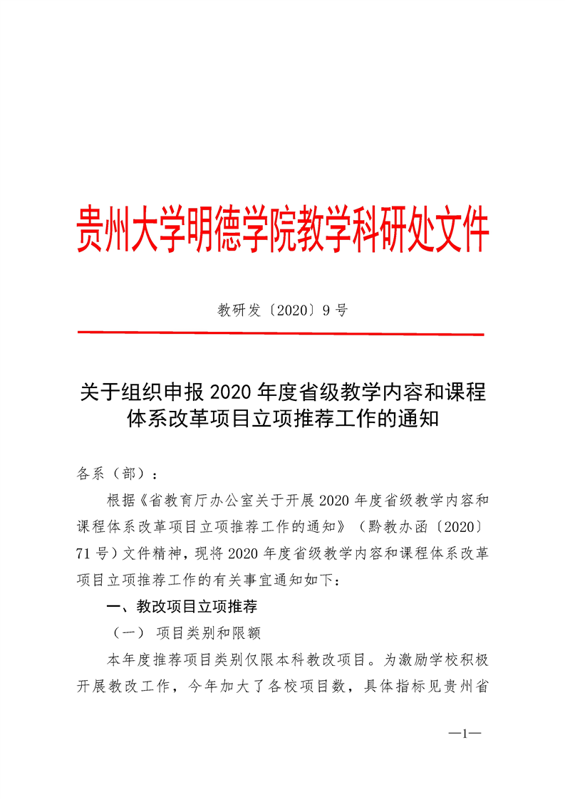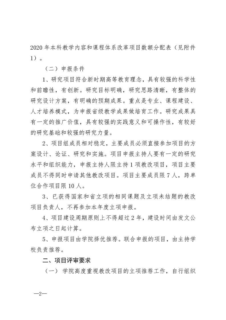 关于组织申报2020年度省级教学内容和课程体系改革项目立项推荐工作的通知