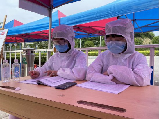 31日早上7:40,我系辅导员们就已在校门口苦苦等候同学们的到来,他们身穿防护服、眼带护目镜,脸带温暖与笑容、关怀与问候,做好一切迎接工作,用最美的姿态迎接阔别已久的同学们。
