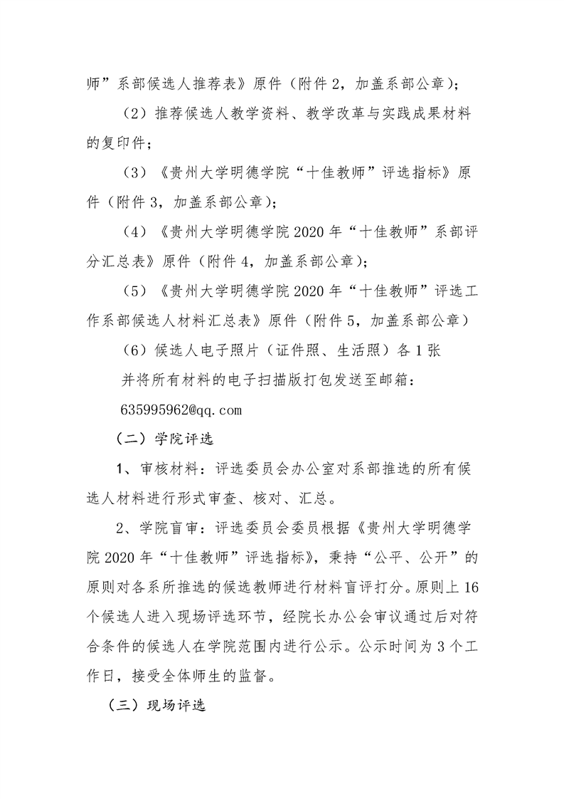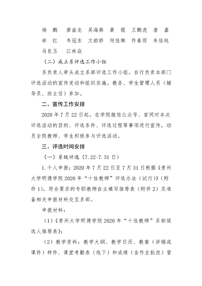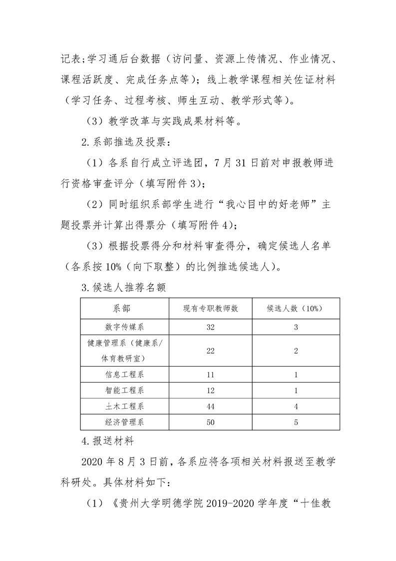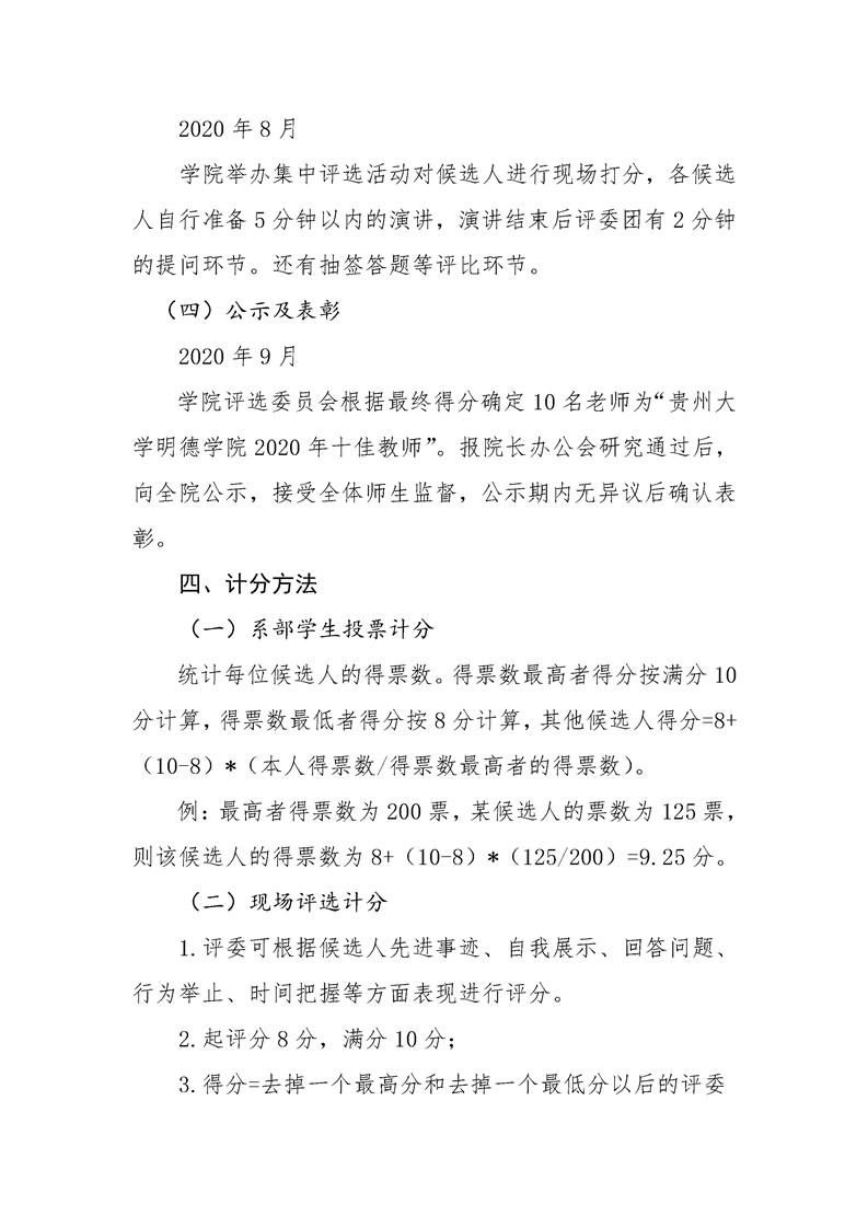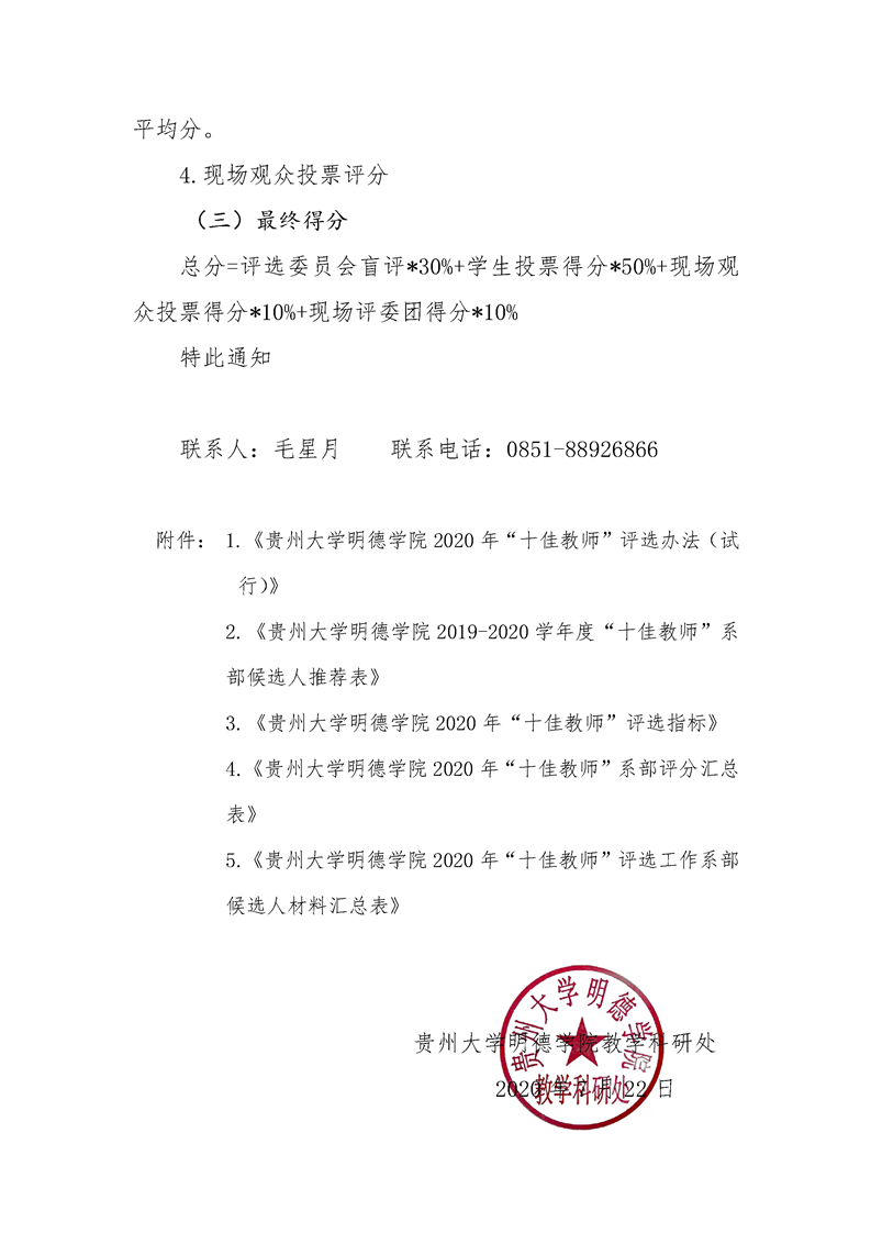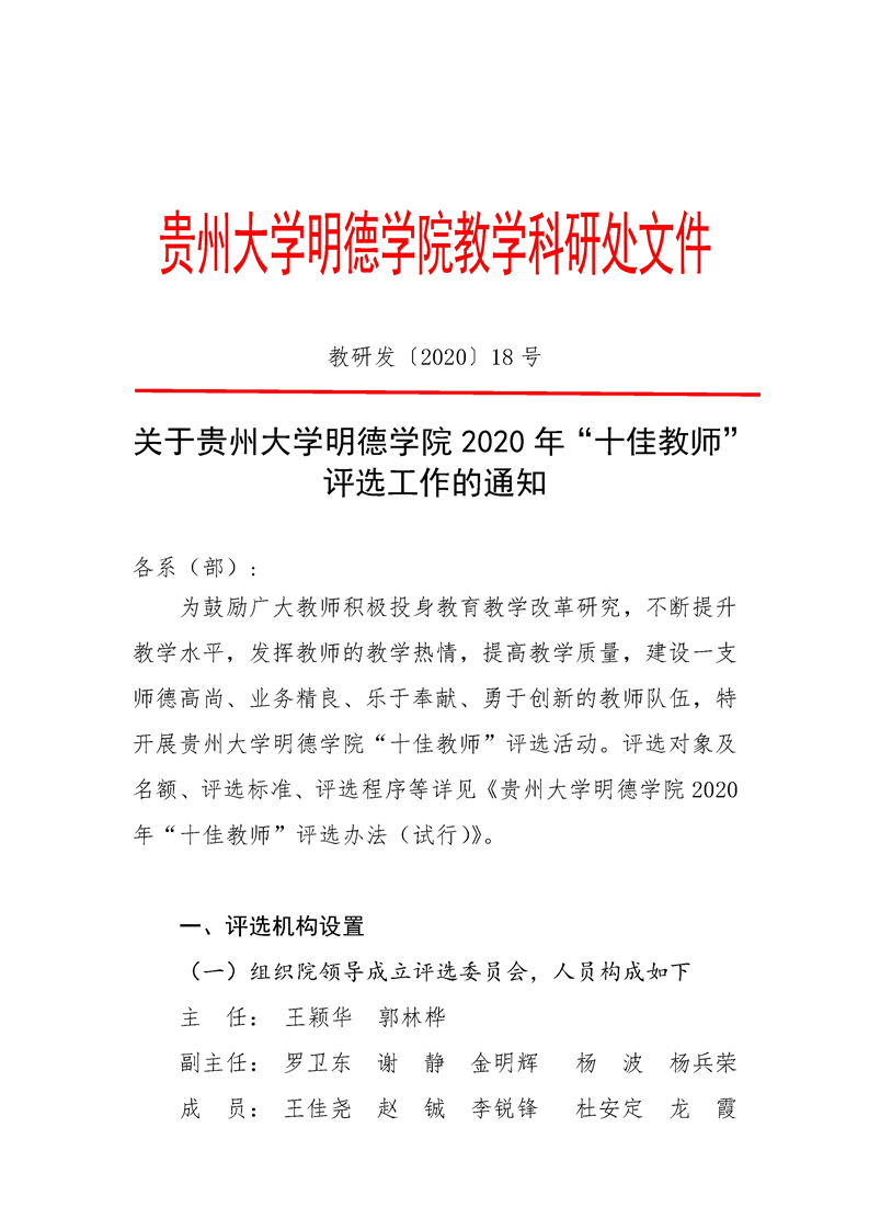 关于贵州大学明德学院 2020 年“十佳教师” 评选工作的通知