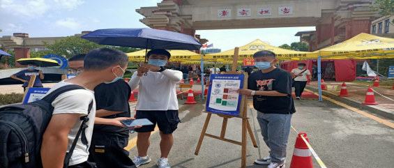 我系上下一直高度重视开学疫情防控工作,为了给师生营造健康安全的良好环境,全面细致地落实开学返校各项工作,落实校园安全管控机制,早在报到前几周,我系就制定了周密的预案。报到前一天,校园内检测、查验、应急处置点便已全部部署完毕。我系老师、返校志愿者们奔走于校门口各个检查点,为土木学子们平安返校进行着最后的全面检查和复核工作。每个人都按规定佩戴着口罩、间距有序经过健康卡和行程码核验、体温检测、行李消毒、提交返校承诺书等程序后,跟随志愿者的指引,有序进入生活区宿舍楼。