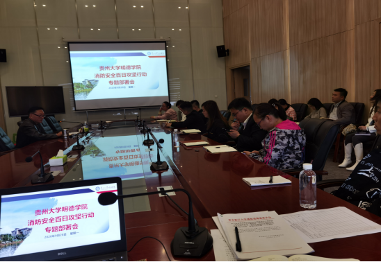 9月28日上午,我院组织召开消防安全“百日攻坚”行动动员部署会,学院分管安全的金明辉副书记出席会议,学院中层干部参加会议。保卫工作处副处长冉小旭传达学习了《贵阳市贵安新区消防安全百日攻坚专项行动工作方案》,并对《贵州大学明德学院开展消防安全百日攻坚行动实施方案》进行解说,并对消防安全相关工作进行安排:在消防安全百日攻坚行动中,分动员部署、组织实施、总结验收三个阶段,希望各单位以担当落实为主导,以整治隐患为主线,进一步深化责任落实、消防隐患排查、火灾隐患整治、消防培训演练工作。金书记在会上指出,我院安全生产工作总体形势是好的,但也要清醒的认识到安全生产、消防安全隐患仍然存在,管理部门要对全院尤其是重点部位开展全面排查,各系各部门要层层压实,要“常”抓“长”抓。各部门必须始终牢记“安全生产永远在路上”的忧患意识,时刻紧绷安全生产这根弦,做到思想上不麻痹,工作上不懈怠,力度上不削减。要健全和完善长效工作机制,不断夯实平安建设基础,提升我院安全生产整体水平,各部门下大力气抓好各项工作落实,严之又严、细之又细,坚决打赢百日攻坚战。