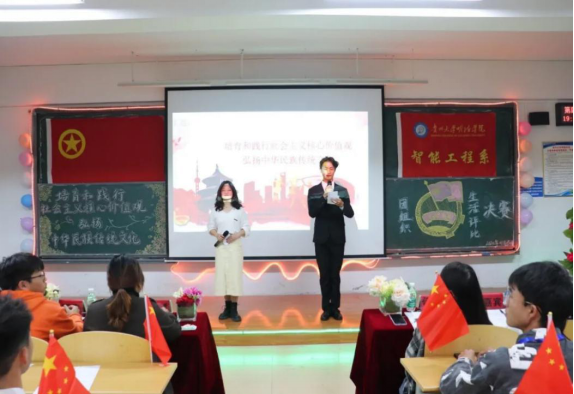 2020年11月15日晚上19:00,贵州大学明德学院智能工程系以“培育和践行社会主义核心价值观,弘扬中华民族传统文化”为主题的团组织生活评比决赛在教室E208正式开始。