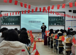 我系组织部负责人黄富华进行点评,他表示:我们的参赛选手都很棒,班级活动和形式多样,但也存在一点问题,PPT的文字太多,需要加以改正。