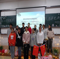 我系组织部负责人张福洪对此次团组织生活评比作总结,他表示:团组织生活是团支部对团员的一种自我教育的基本形式,根据各班团支部对团组织生活的开展,提升自我。对于有些参赛选手拿着手稿,大篇幅的读PPT内容,希望以后能改进这些问题。活动最后我们的评委和参赛选手合影留念。