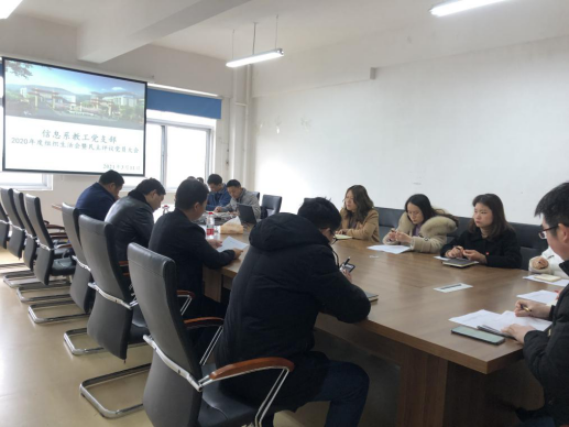 为进一步贯彻“党要管党、从严治党”方针,切实加强对党员的经常性教育、管理和监督,始终保持共产党员的先进性,根据中央组织部《关于建立民主评议党员制度的意见》精神,按照《中国共产党章程》《中国共产党党内监督条例(试行)》《中国共产党纪律处分条例》《中国共产党党员权利保障条例》等有关规定,按照学院党委要求,我系教工党支部于2021年3月11日中午12:30在A305会议室召开了2020年度组织生活会暨民主评议党员大会,参加此次会议的有教工党支部书记、院长王颖华同志,院长助理杨兵荣同志以及信息系教工党支部所有党员教师,系主任王佳尧老师列席了本次会议。