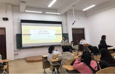 本着为同学们提供丰富多彩的课余生活,我们健康管理系于202146日在教室F002,特地开展有趣的身心健康活动。情绪是反映事物与人的需要之间的关系,它是以需要为中介的反映形式,客观事物并不全部都能引起人的情绪,只有与人的需要有关的事物,才能引发人的情绪。一般说,凡满足人的需要时,会引起肯定的情绪体验,如愉快、高兴等。凡不能满足人的需要时,则引起否定的情绪,如愤怒、恐惧等。为了帮助学生更好地把握自己的情绪,做情绪的主人活动以热身游戏《大西瓜、小西瓜》拉开了讲座的帷幕,心理委员说大西瓜,在场的人跟着做小西瓜的动作;心理委员说小西瓜,在场的师生跟着做大西瓜的动作;做错的表演节目。在游戏中,打破了紧张的气氛,师生都融入了场景中。