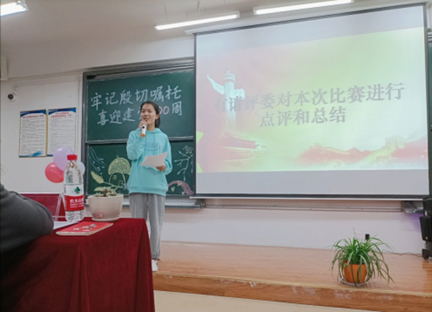 我系学生会负责人居荣萍对本次比赛做活动评价和总结,她表示:中国在不断的发展,贵州也在不断的发展。中国的脱贫主要看贵州,贵州的脱贫主要看毕节,而就在建党百年之际,贵州毕节的脱贫攻坚战也取得了胜利。这就是在中国共产党的领导下,百年之中取得的一大胜利。对于此次演讲比赛,感谢参赛者的精彩演讲,也感谢大家的到来。