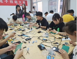 次比赛中,老师的指导下,同学们不仅加强了对竞技比赛的认识,更发扬了电子技能竞赛的健康、团结、向上、拼搏的精神,并通过电子技能竞赛培养参与者战屡战术军事思想。在这紧张的两个半小时里,选手们目光专注,神情认真,都在为自己而努力