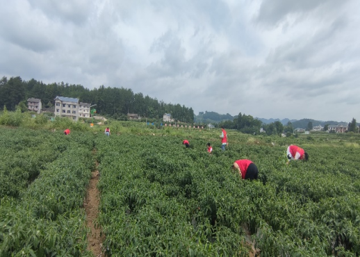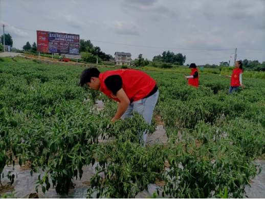 7月16日上午8点,实践队全体队员迎着朝阳,走向关田坝辣椒种植示范基地,开展除草活动。村民们为实践队队员们找来了除草工具,实践队队员们接过工具后就怀着满腔热血进入到辣椒种植基地中,工具松土,弯腰除草、汗水顺颊而流。