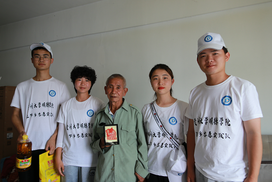 最后一组志愿者们来到亿滕小区拜访慰问老党员罗登银爷爷,并为罗爷爷送去了一些物资。对于志愿者们的拜访慰问,罗爷爷表示很开心,并与志愿者们分享了他年轻时修桥筑路、建设家乡的事迹,也对志愿者们的到来表示感谢!通过与罗爷爷的谈话得知他是1995年入党,年轻时在村里担任村支书并且积极向党组织靠拢。此外,志愿者们还从罗爷爷口中得知他的子女长期在外打工,孙儿也是在外上学,长期不在身边。独身一人的罗爷爷通常是与周边邻居在广场跳舞来作为娱乐消遣。