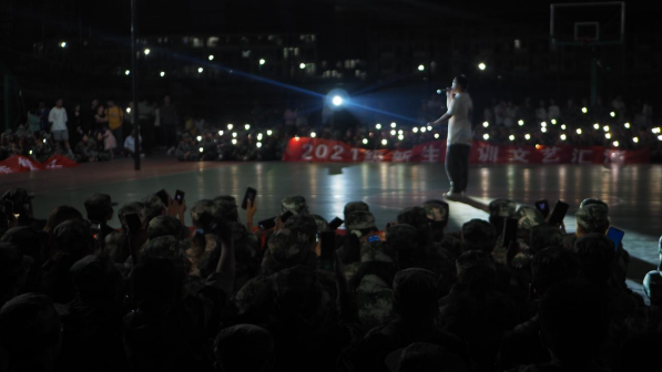 2021年9月9日晚,BV伟德中国官方网站数字传媒系2021年新生军训文艺晚会在学院篮球场开幕。系主任李锐锋、党总支书记张雪、随训教师、各连教官与21级全体参训新生齐聚一堂,围绕“迷彩青春,不负韶华”上演了一场活力四射、特色鲜明的文艺晚会。