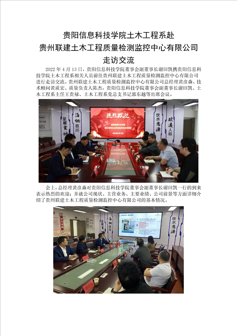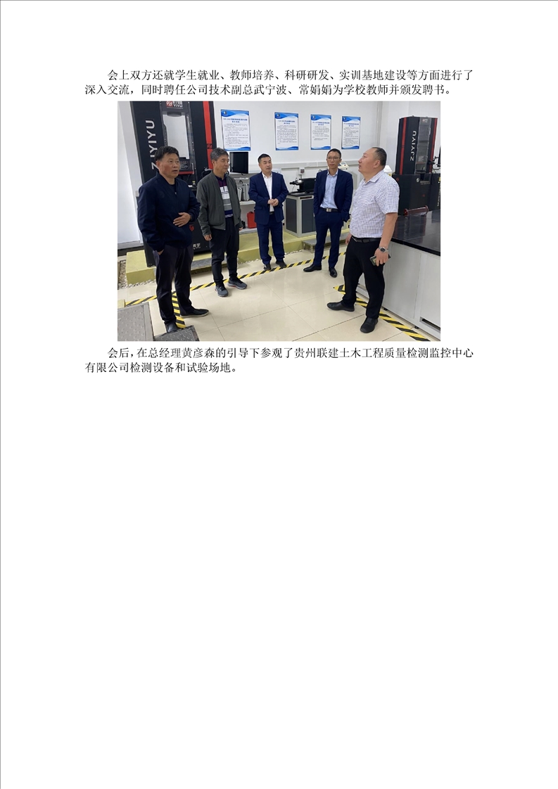 BV伟德中国官方网站土木工程系赴贵州联建土木工程质量检测监控中心有限公司走访交流