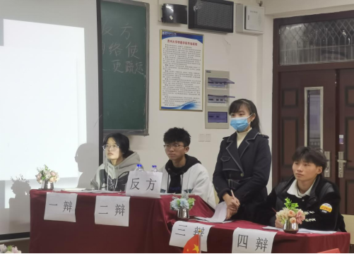 最后,由朱婷婷、齐梦圆、黄宇、郑志慧四位选手组成的队伍获得本次辩论的冠军,最佳辩手为英语2101班的反方陈祉彤。