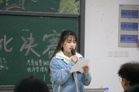 (图为学生会第一副书记陈晓慧致辞)