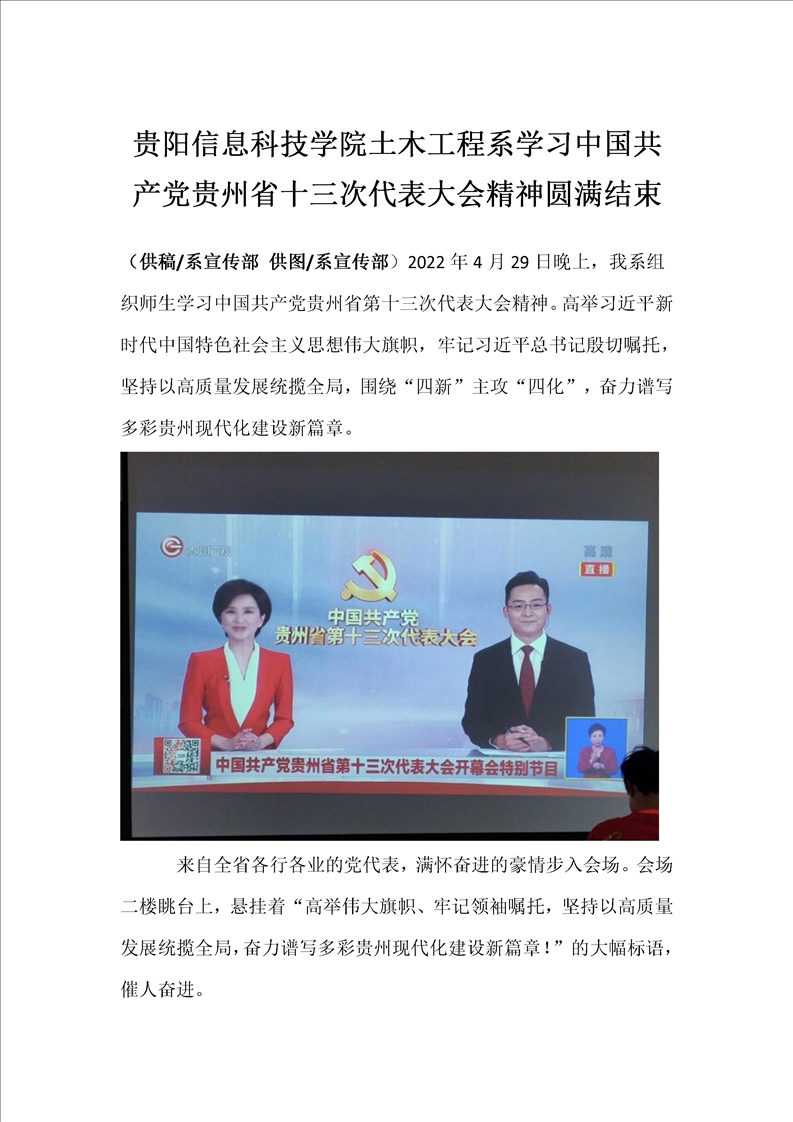 BV伟德中国官方网站土木工程系学习中国共产党贵州省十三次代表大会精神圆满结束