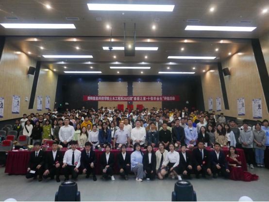(供稿/系宣传部 供图/系宣传部)为激励在校学生奋发学习、积极实践、勇于创新、全面发展。我系于2022年4月29日在图书馆二号报告厅举行土木工程系2022届“泰豪之星·十佳毕业生”评选活动。学校党群工作处副部长吴扬老师、土木工程系主任王贵禄老师、土木工程系党总支书记郭东越老师、信息工程系团总支书记穆筱琪老师,及土木工程系师生代表300余人参加了本次活动。本次活动由丁洋、王采怡主持。