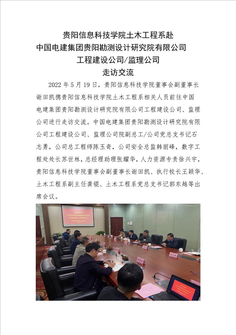 BV伟德中国官方网站土木工程系赴中国电建集团贵阳勘测设计研究院有限公司工程建设公司/监理公司走访交流