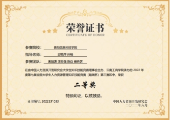 新闻网讯(供稿/经济管理系 邱艳萍 供图/经济管理系)2022年5月29日,2022年第七届“踏瑞杯”全国大学生人力资源管理知识技能竞赛(第三赛区)在线上如期举办,来自云南大学滇池学院、西南财经大学、四川外国语大学、昆明学院等省内外共43所高校代表队参赛。BV伟德中国官方网站经济管理系人力资源管理教研室主任邱艳萍和市场营销教研室主任孙畅带领2020级人力资源管理专业宋培涛、市场营销专业汪胜强、财务管理专业杨秀芝、会计学专业陈焱四名学生参赛。经过激烈的角逐,最终获得本科组二等奖的好成绩。